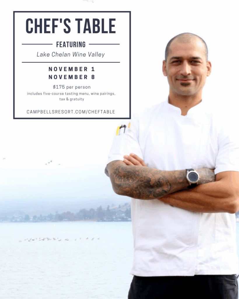 Chef’s Table returns for a very special two-night series on Saturday, November 1 and Saturday, November 8 at Campbell’s Resort. Each evening offers a unique, curated dining experience where every guest is treated as a “personal guest of the Chef.” In partnership with the Lake Chelan Wine Valley, six winemakers — including Fielding Hills Winery…