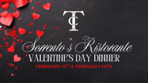 Celebrate Valentine’s Day with a romantic dinner at Sorrento’s Ristorante. With the cozy fireplace, twinkling lights, and the glow of candlelight, it’s the perfect setting to share a bottle of wine and a memorable evening with your loved one.
